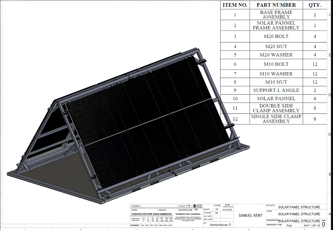 - Delivered manufacturing drawings and a complete BOM for fabrication and procurement
